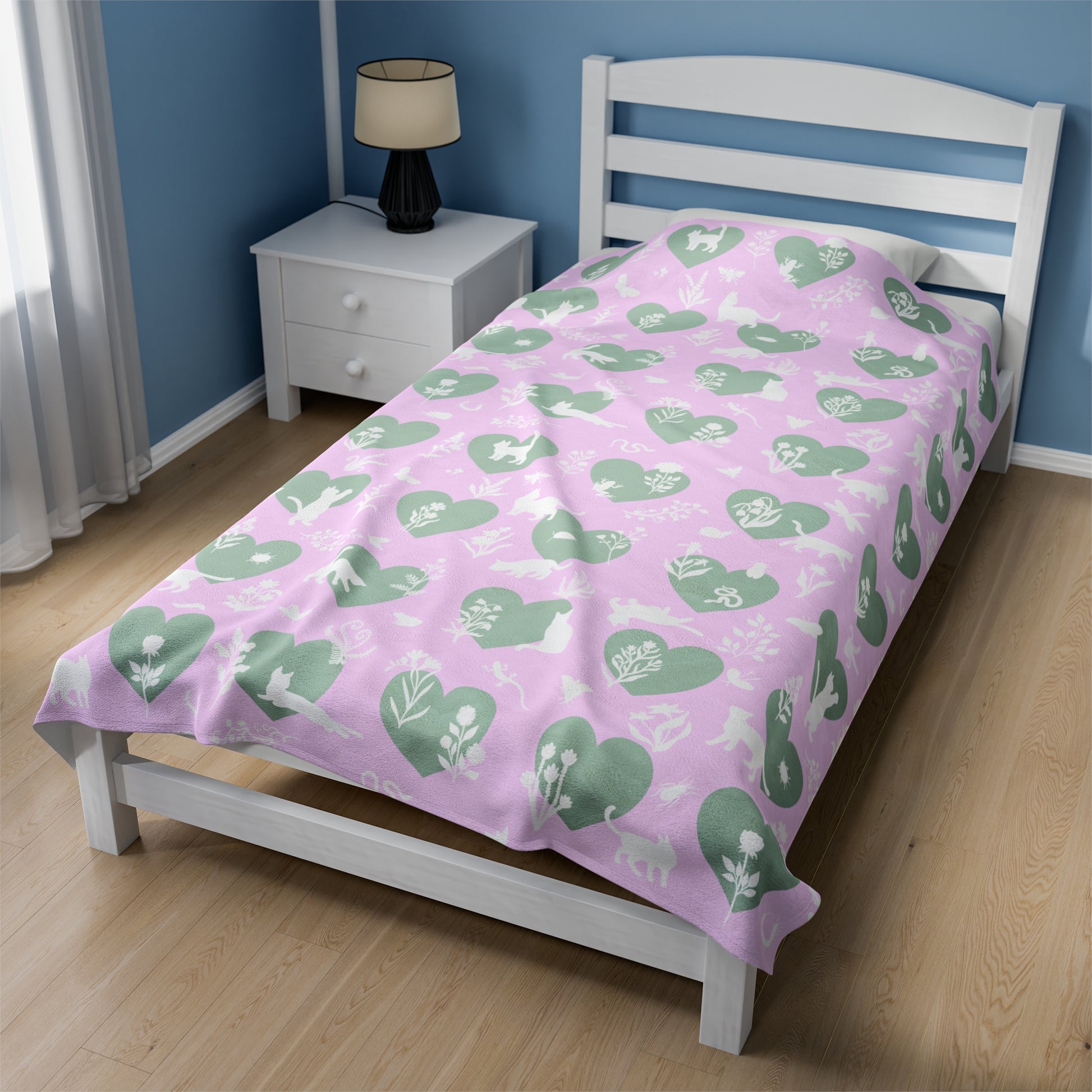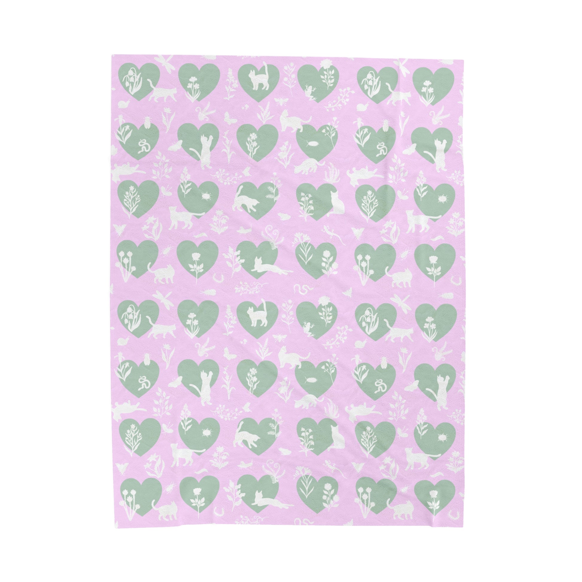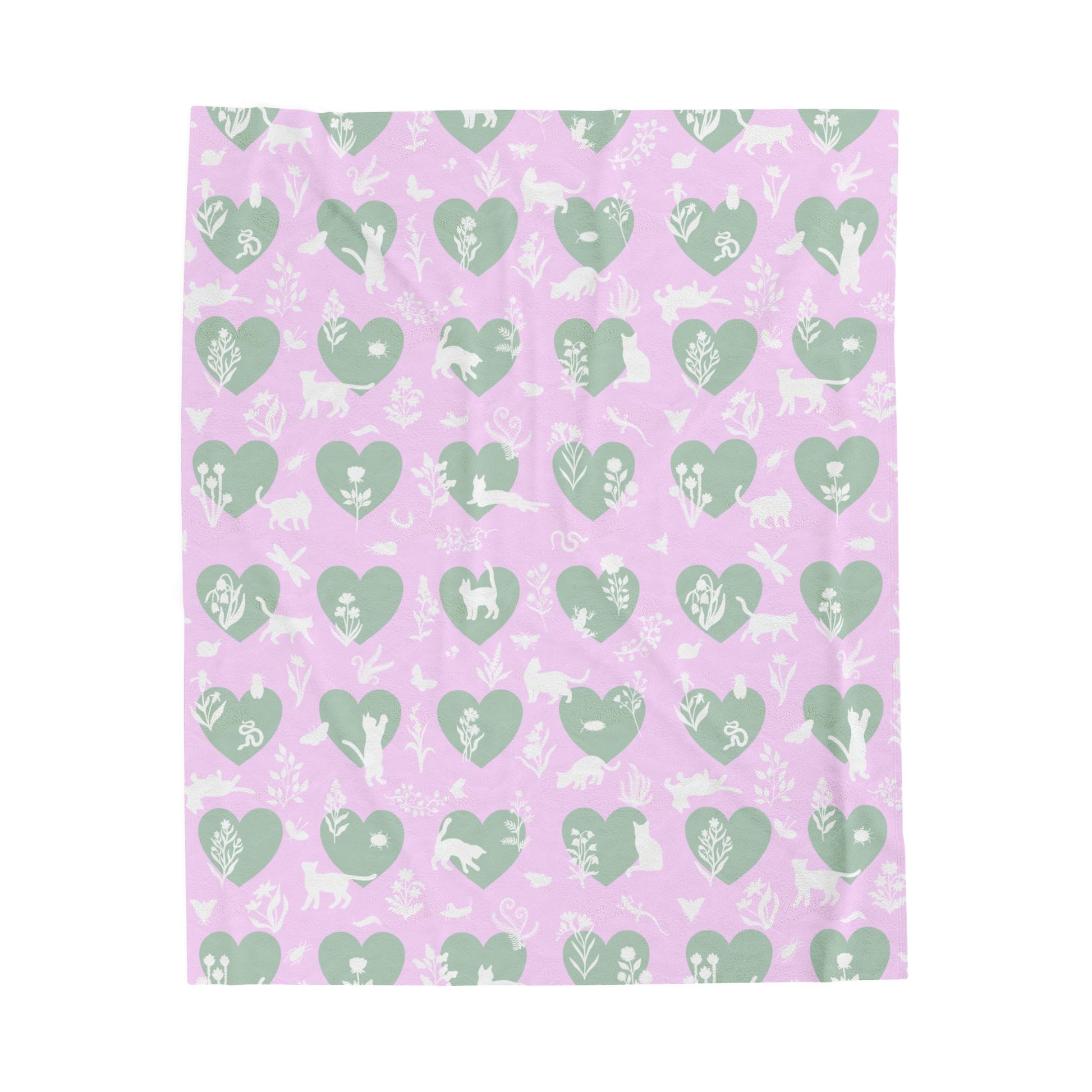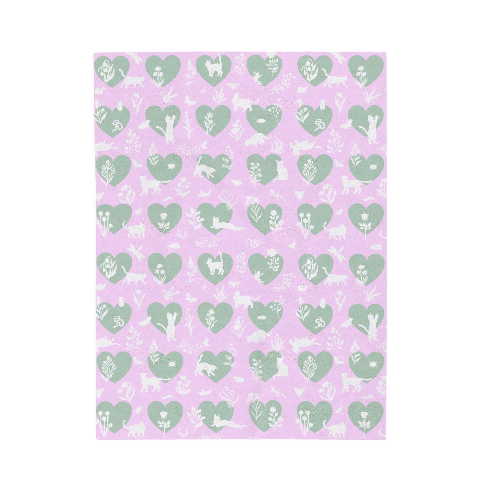 Adorable 'Heart Cats' Velveteen Plush Blanket, Pink&Seafoam
