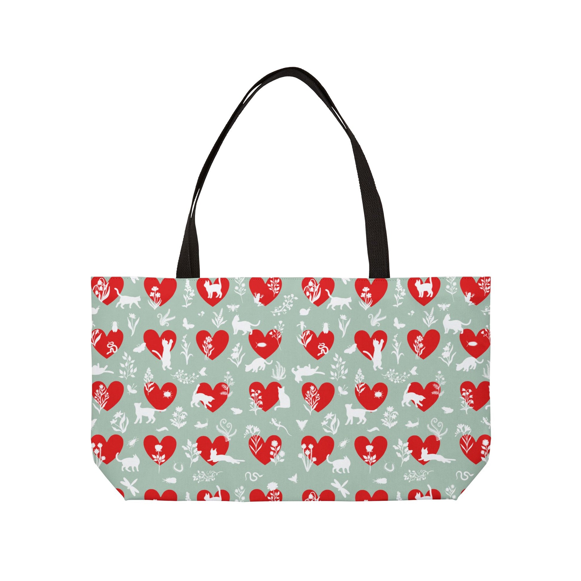 Charming Love Animals Weekender Tote Bag Seafoam , Cute Travel Bag, Heart Pattern Tote, Perfect for Gifts, Fun Weekend Getaway
