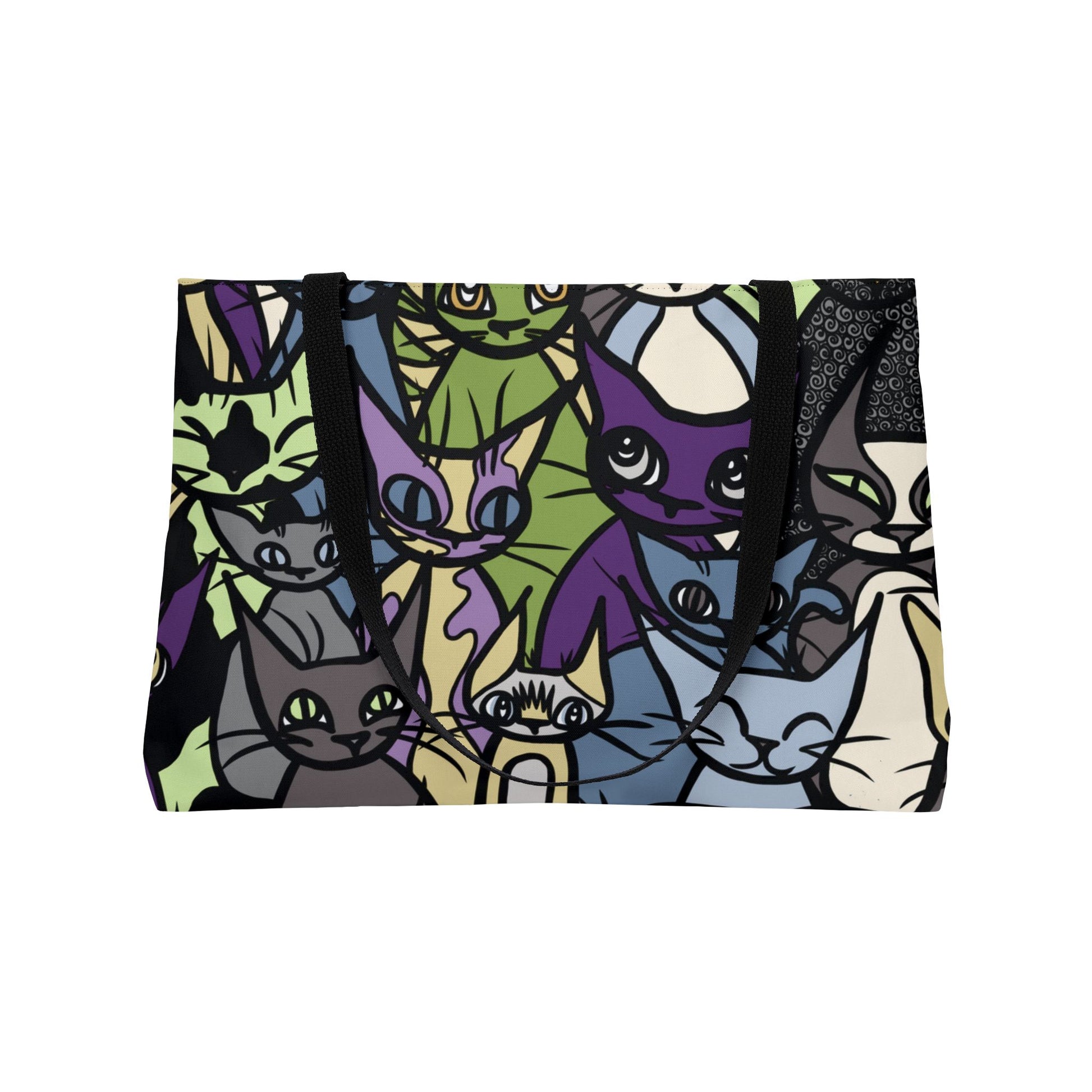 Colorful Cat Weekender Tote Bag, Cat Lover's Canvas Bag, Beach Bag, Travel Tote, Gifts for Cat Owners, Fun Shopping Bag