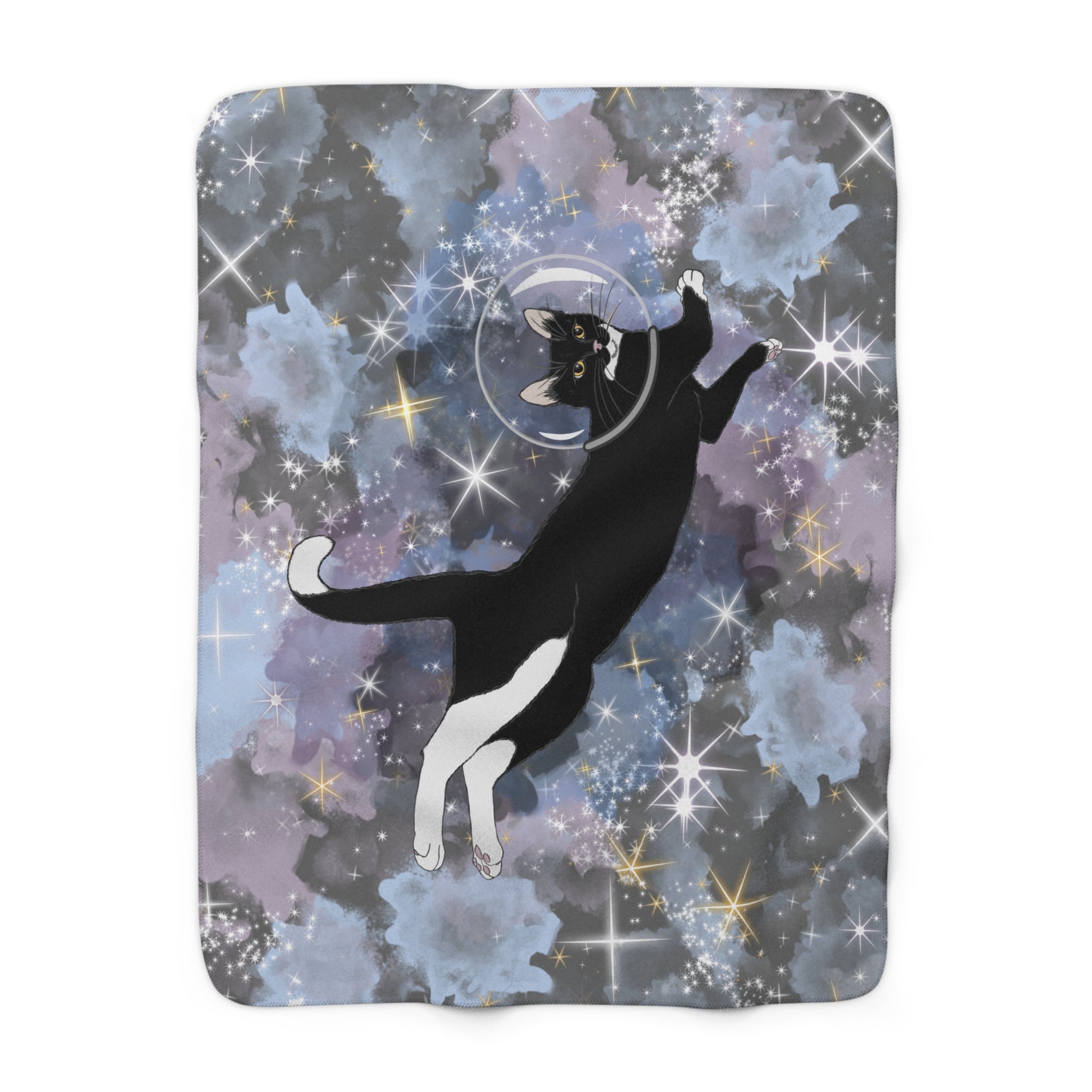 Cosmic Space Cat Sherpa Fleece Blanket | Cozy Space Print Throw for Cat Lovers, Home Decor, Gift, Outer Space, Super Soft
