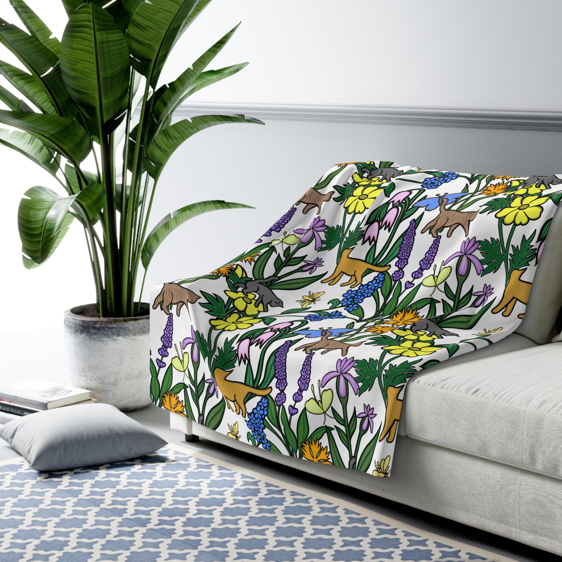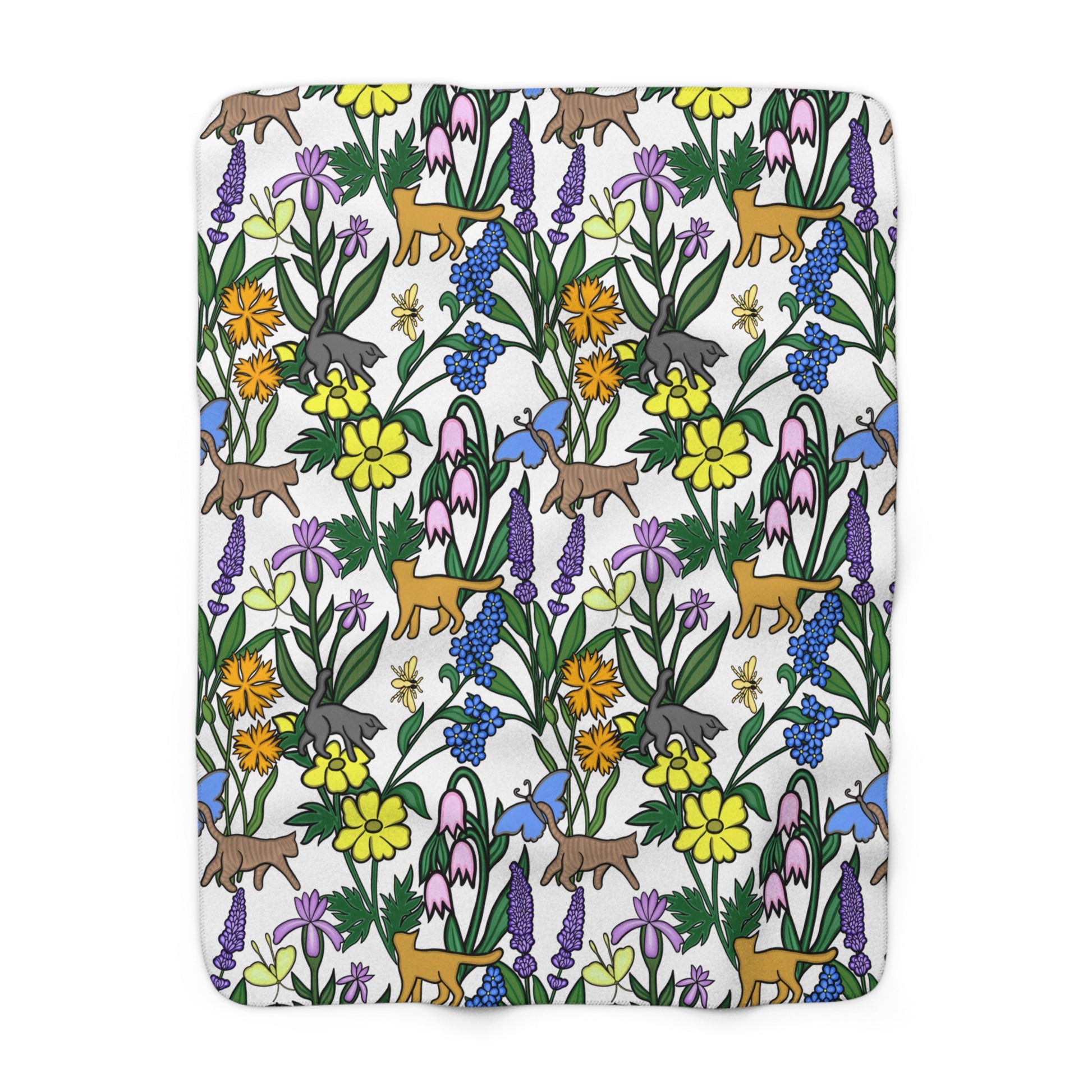Flower Garden Cats Sherpa Fleece Blanket, Super Soft, Home Decor, Gift for Nature and Cat Lovers