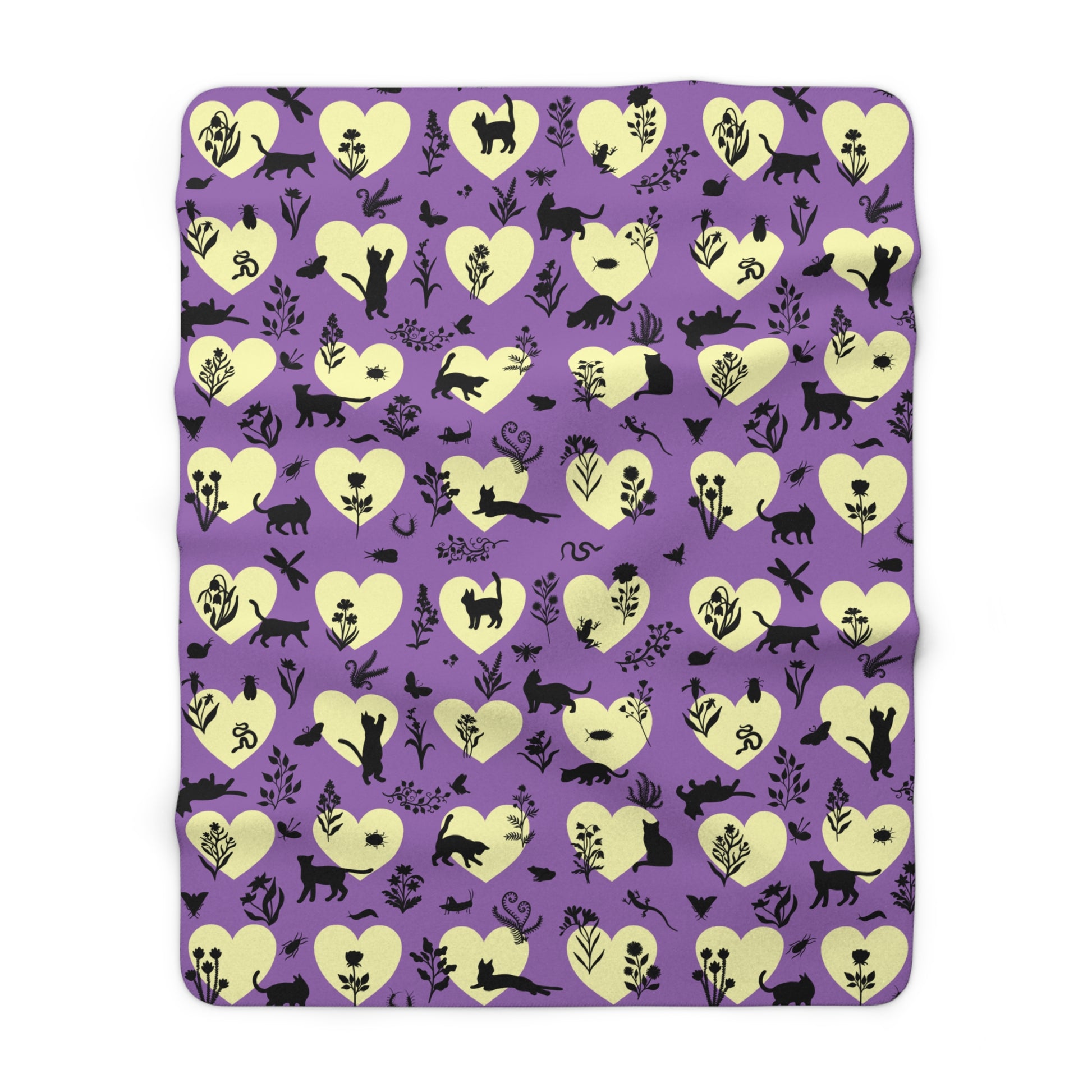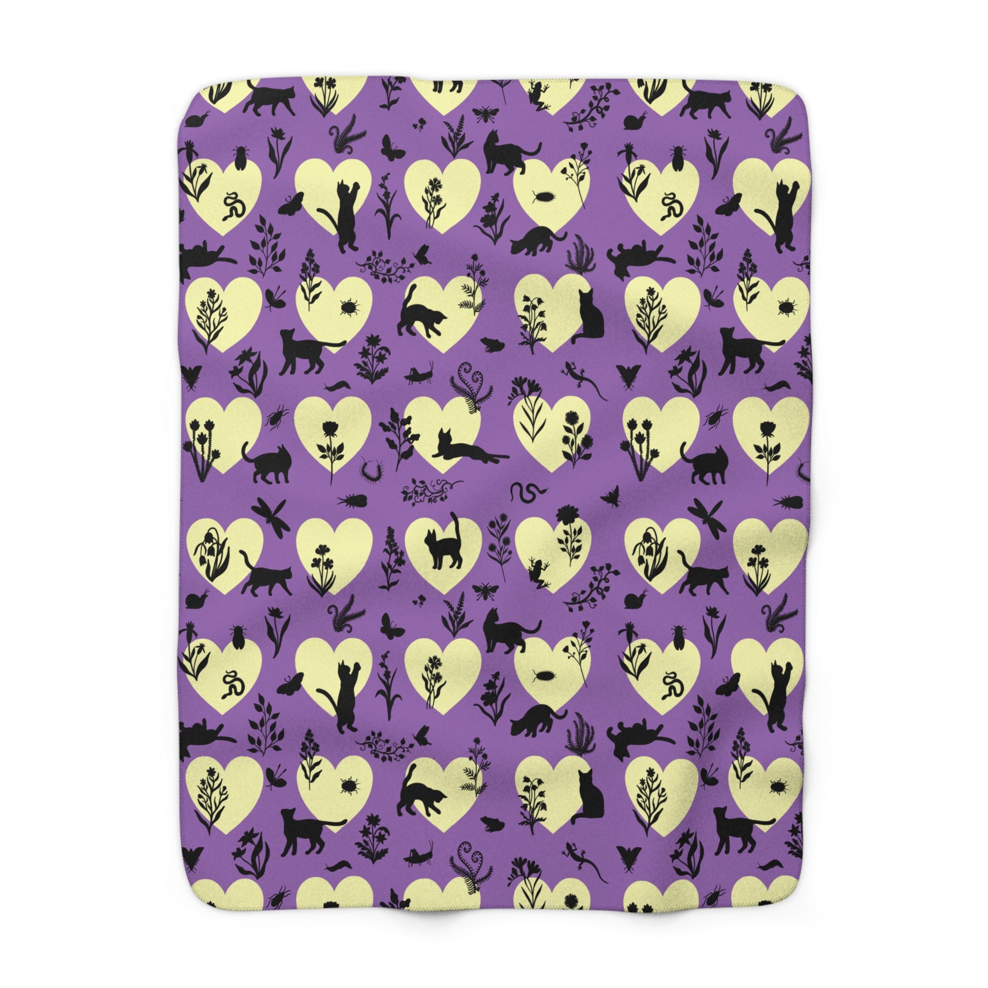 'Heart Cats' Sherpa Fleece Blanket, Witchy Purple&Yellow
