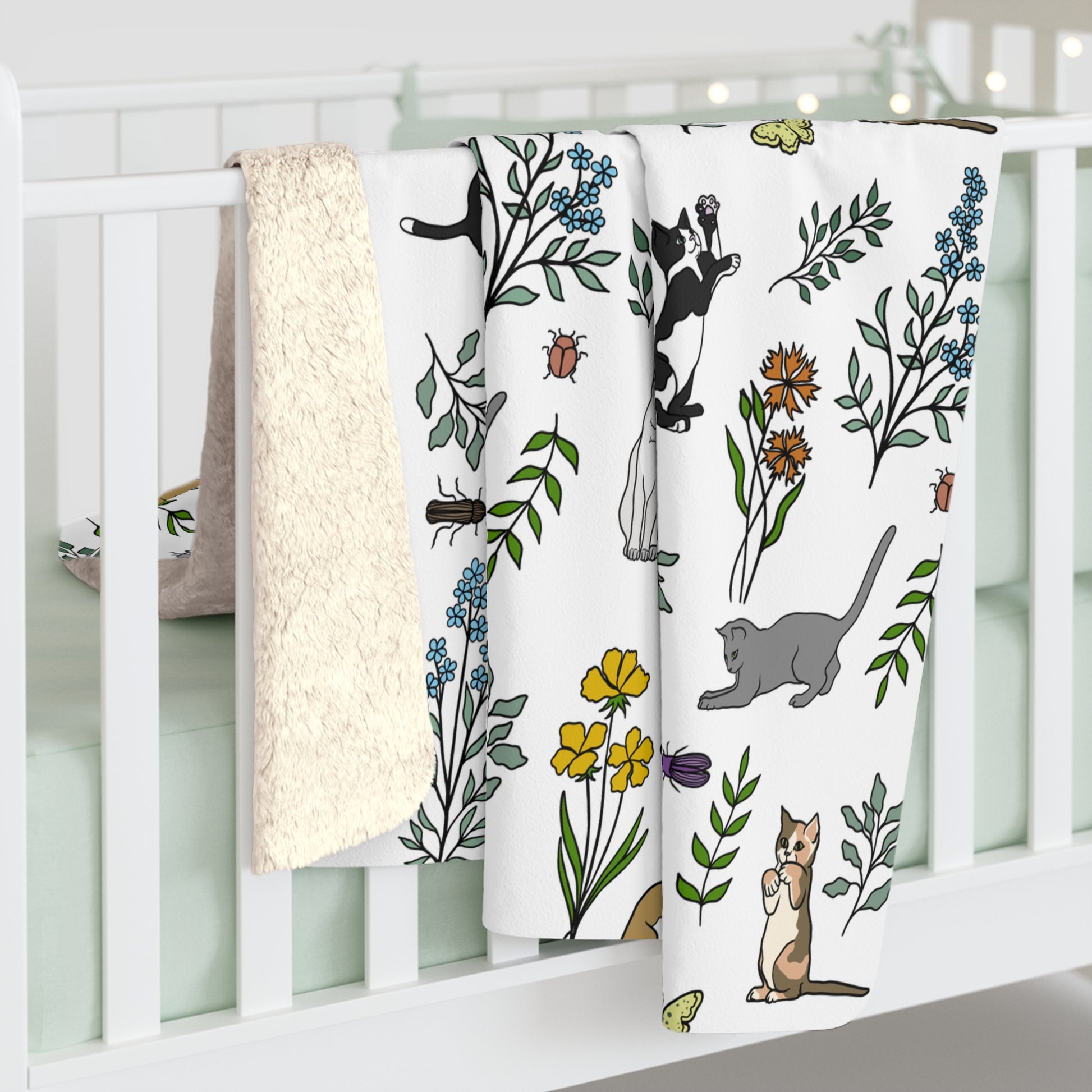 Luxurious Supersoft Sherpa Fleece Blanket, Spring Cats