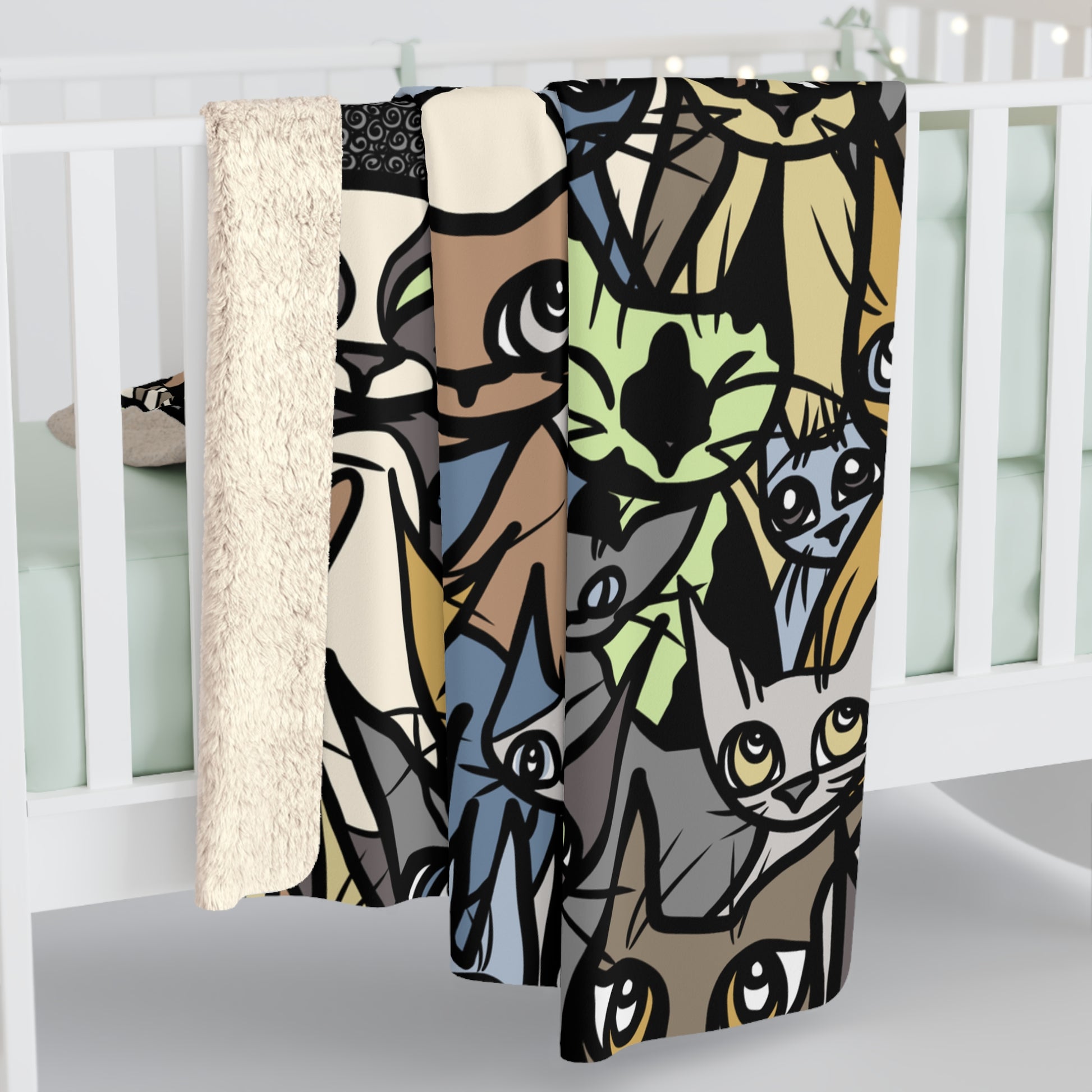 Super Soft 'Cozy Crowd' Cat-Themed Sherpa Fleece Blanket | Purrfect Gift for Cat Lovers | Warm and Snuggly Home Decor | Cat Lover
