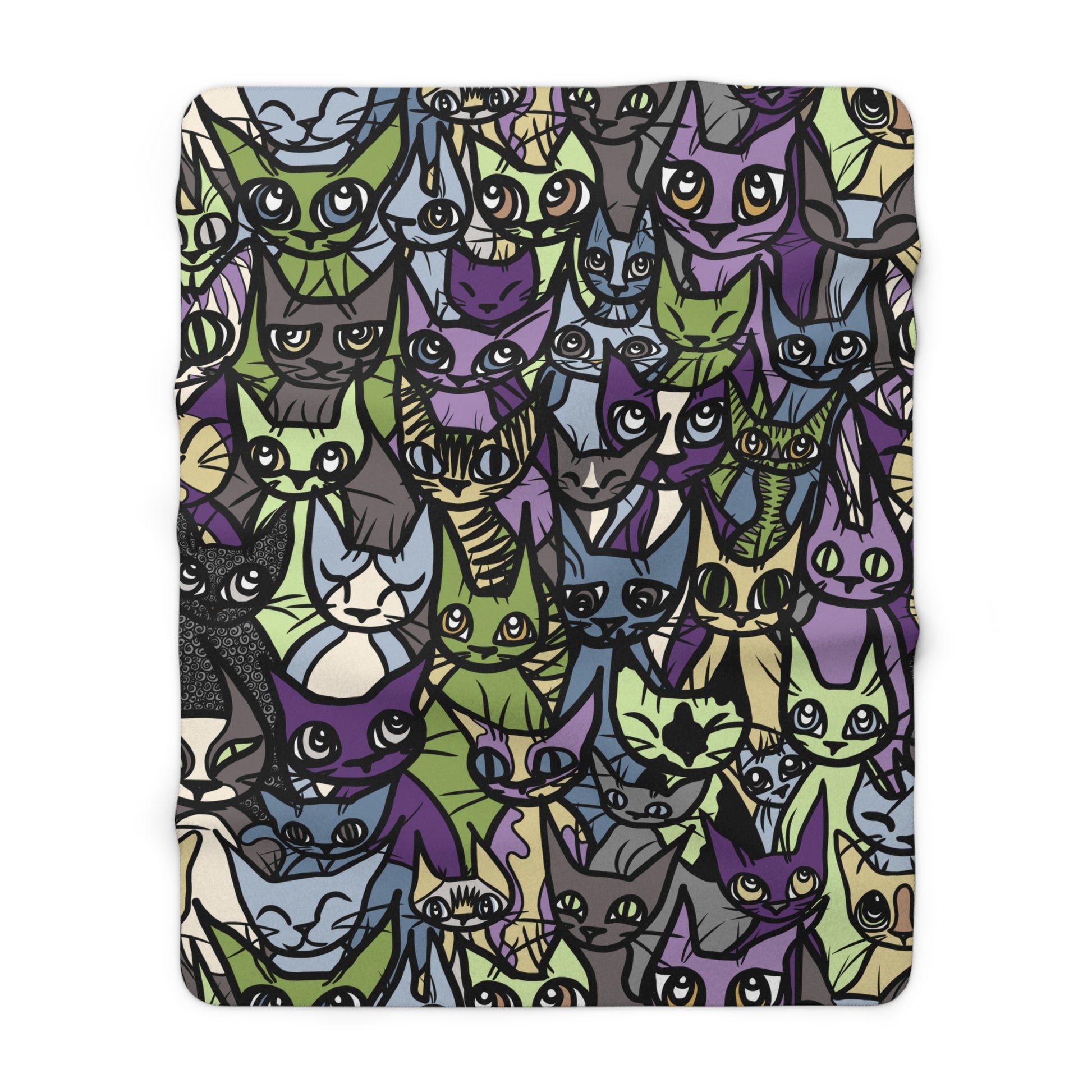 Super Soft Sherpa Fleece Blanket, 'Cozy Crowd' in Purple and Green